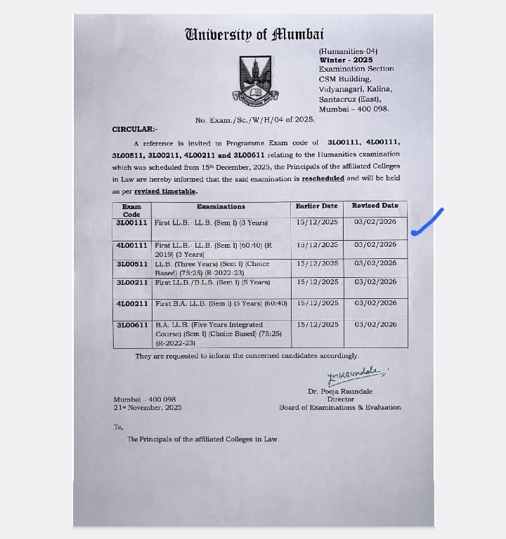 ■ REVALUATION & PHOTOCOPY NOTICE FOR F.Y.LL.B (SEM II) & S.Y.LL.B (SEM IV) EXAMINATION HELD IN OCTOBER 2025