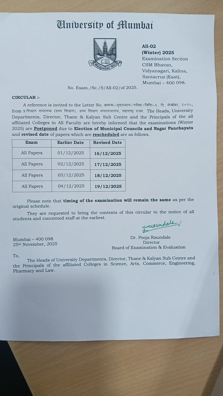 ■ Circular for FYLLB Sem I examination (winter 2025)