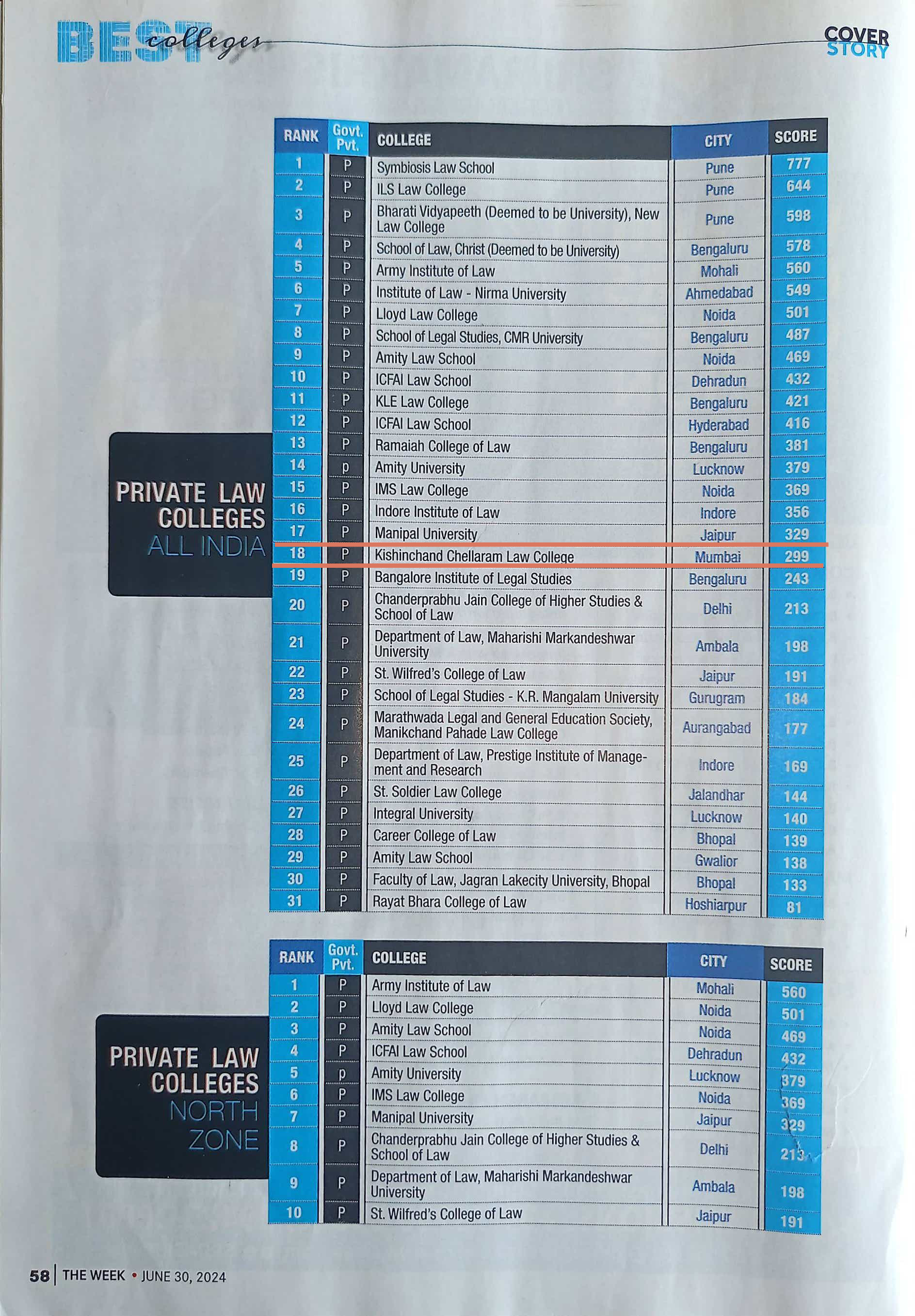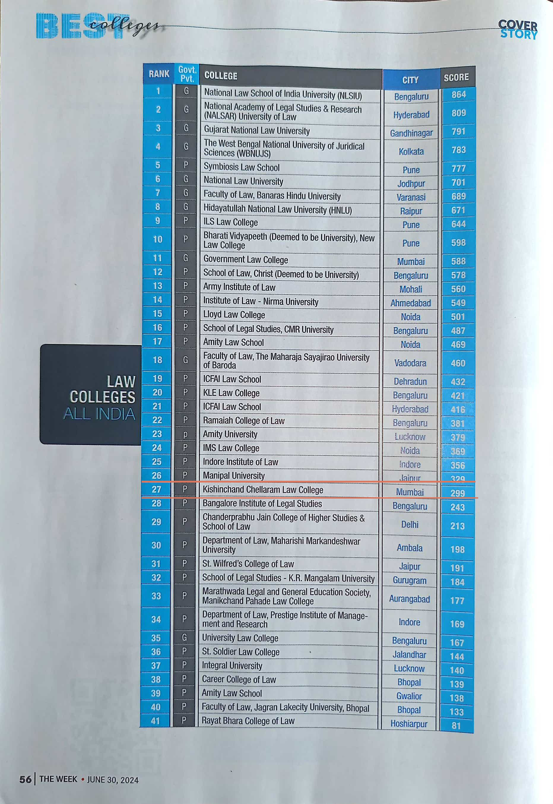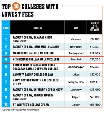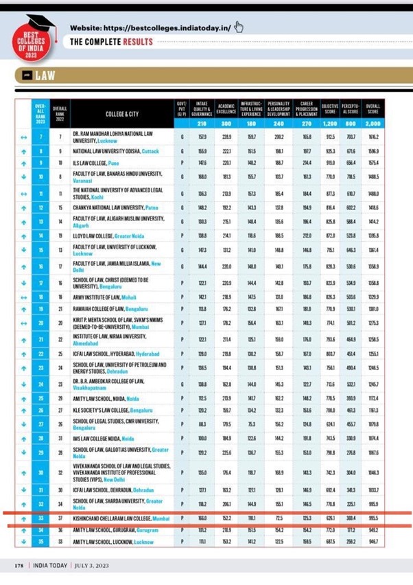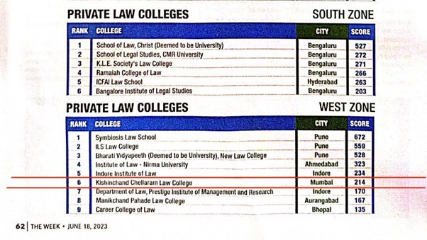 K. C. Law College is ranked 27th among Top Law Colleges in India.