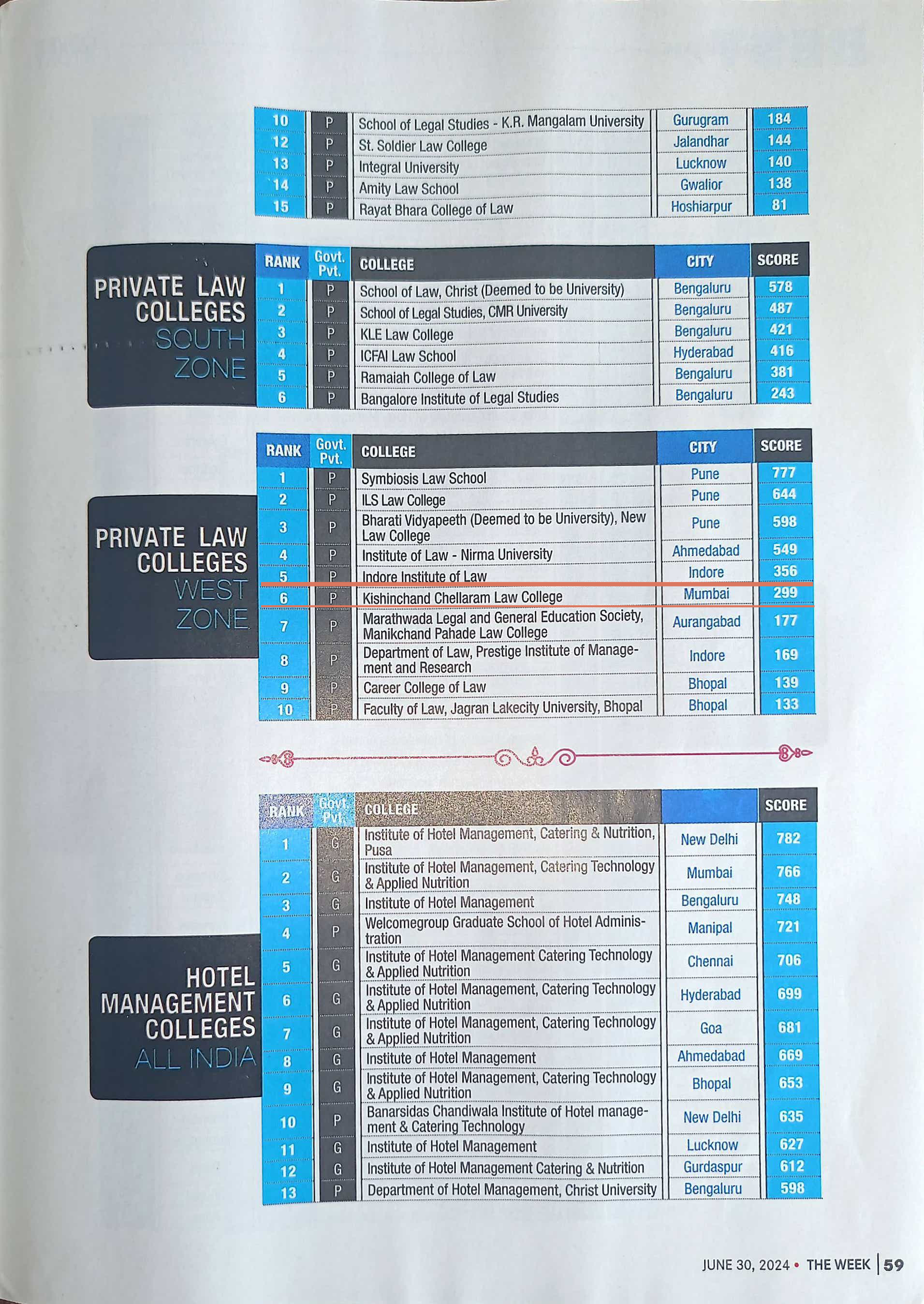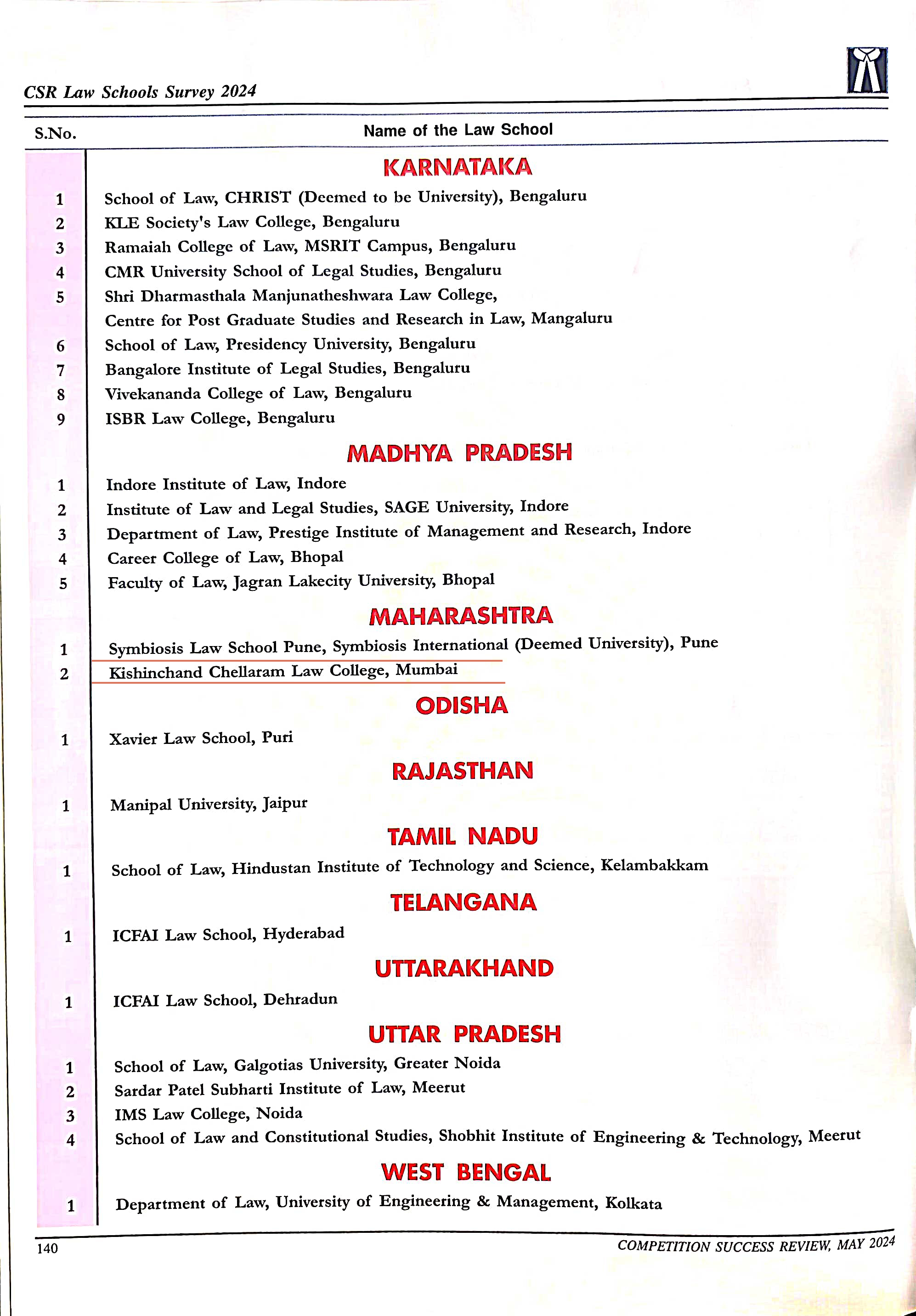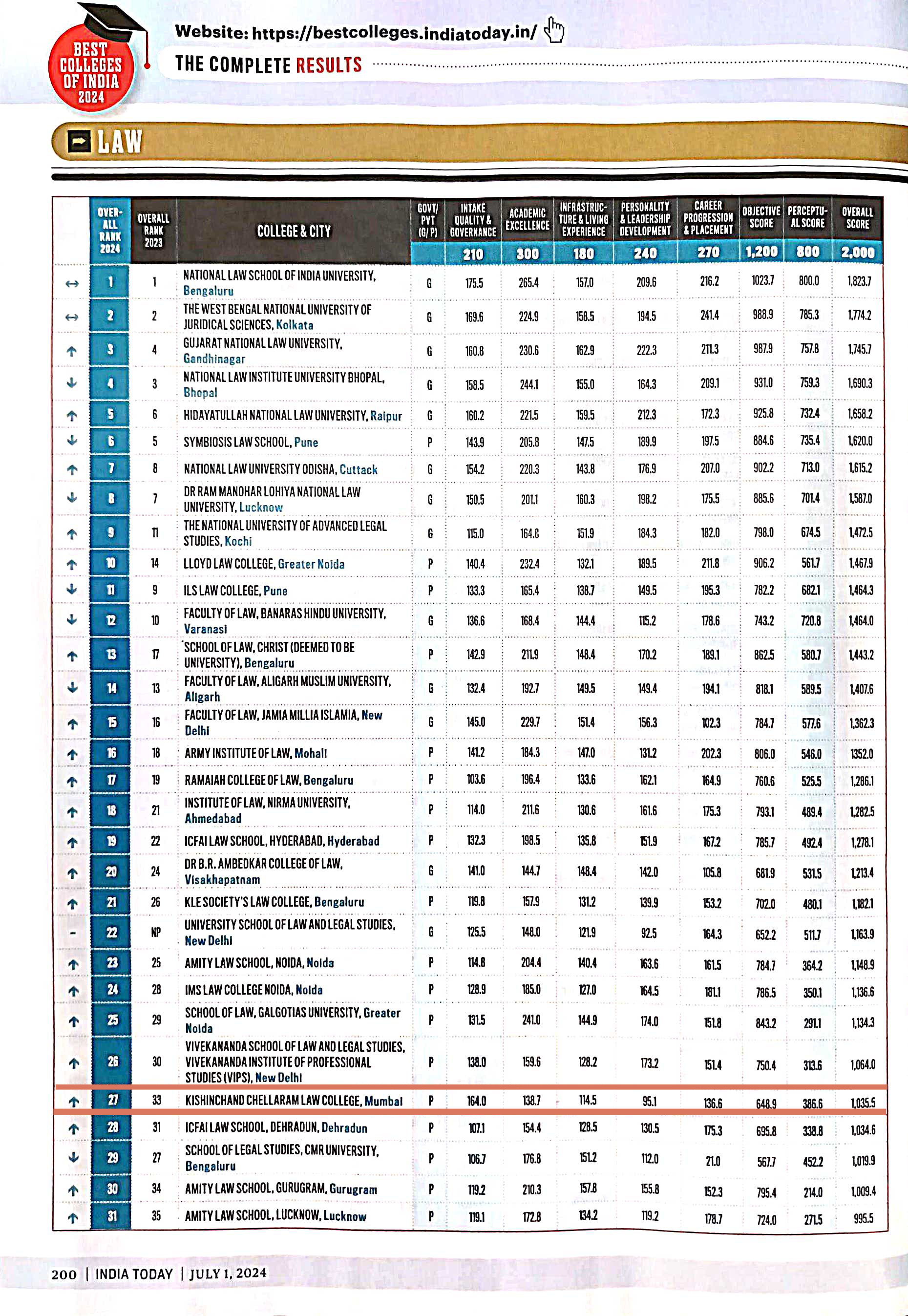 K. C. Law College is ranked 27th among Top Law Colleges in India.